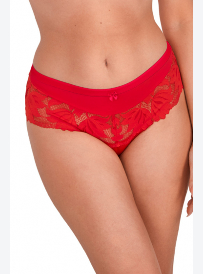 Ці червоні жіночі трусики з широким еластичним мереживним поясом поєднують у собі комфорт та чуттєву..