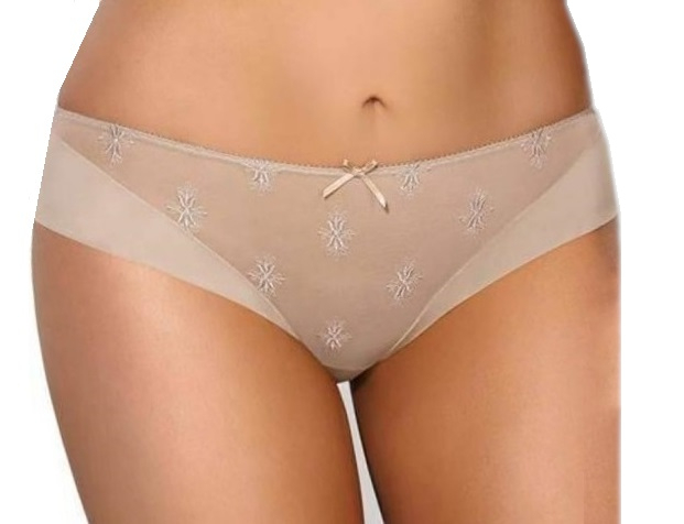 Труси з тонкої тюлевої сітки. Спереду і ззаду прикрашені вишивкою. Склад: 91% поліамід, 5% бавовна, 4% еластан.