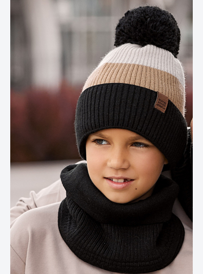Цей комплект для хлопчика, що складається з двосторонньої шапки та грілки для шиї, ідеально підійде ..