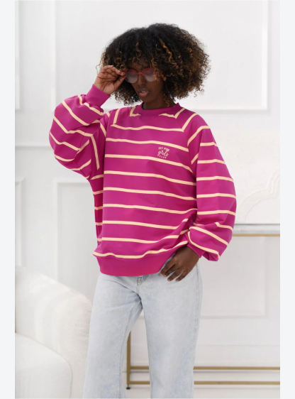 Цей стильний жіночий светр у смужку поєднує в собі позачасовий класичний стиль із сучасним, розслабл..