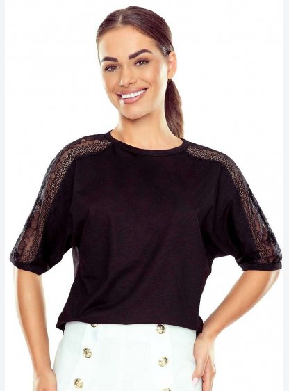 Блузка Sasana чорного кольору – це ідеальне поєднання мінімалістичної форми та жіночних декоративних..