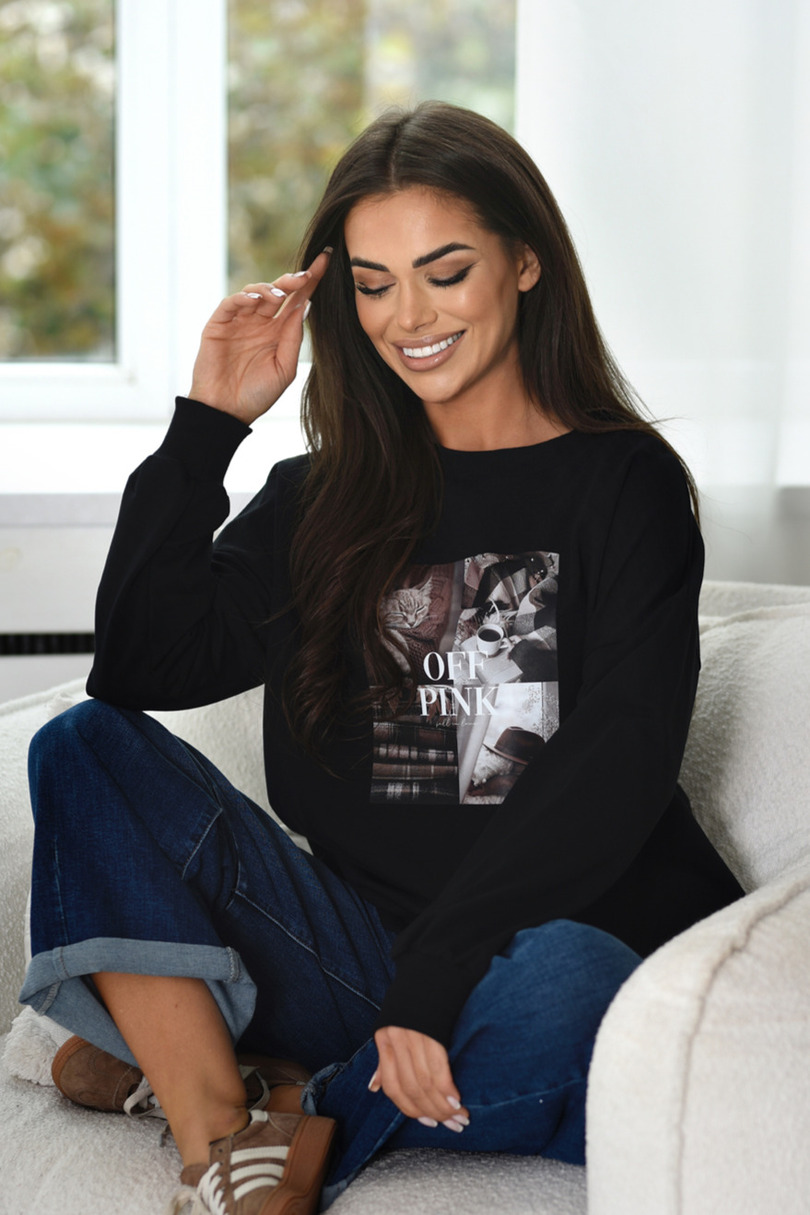Цей жіночий светр-светр поєднує в собі комфорт, стиль та унікальний дизайн. Виготовлений з м'якого, дихаючого бавовняного трикотажу з еластаном, він забезпечує свободу рухів та ідеальну посадку. Ребристі манжети, виріз горловини та низ гарантують, що светр зберігає свою форму навіть після багаторазового прання. Великий модний принт спереду додає характеру, покращуючи будь-який образ. Ідеально підходить для щоденного носіння, будь то на роботу, до школи чи прогулянку.
