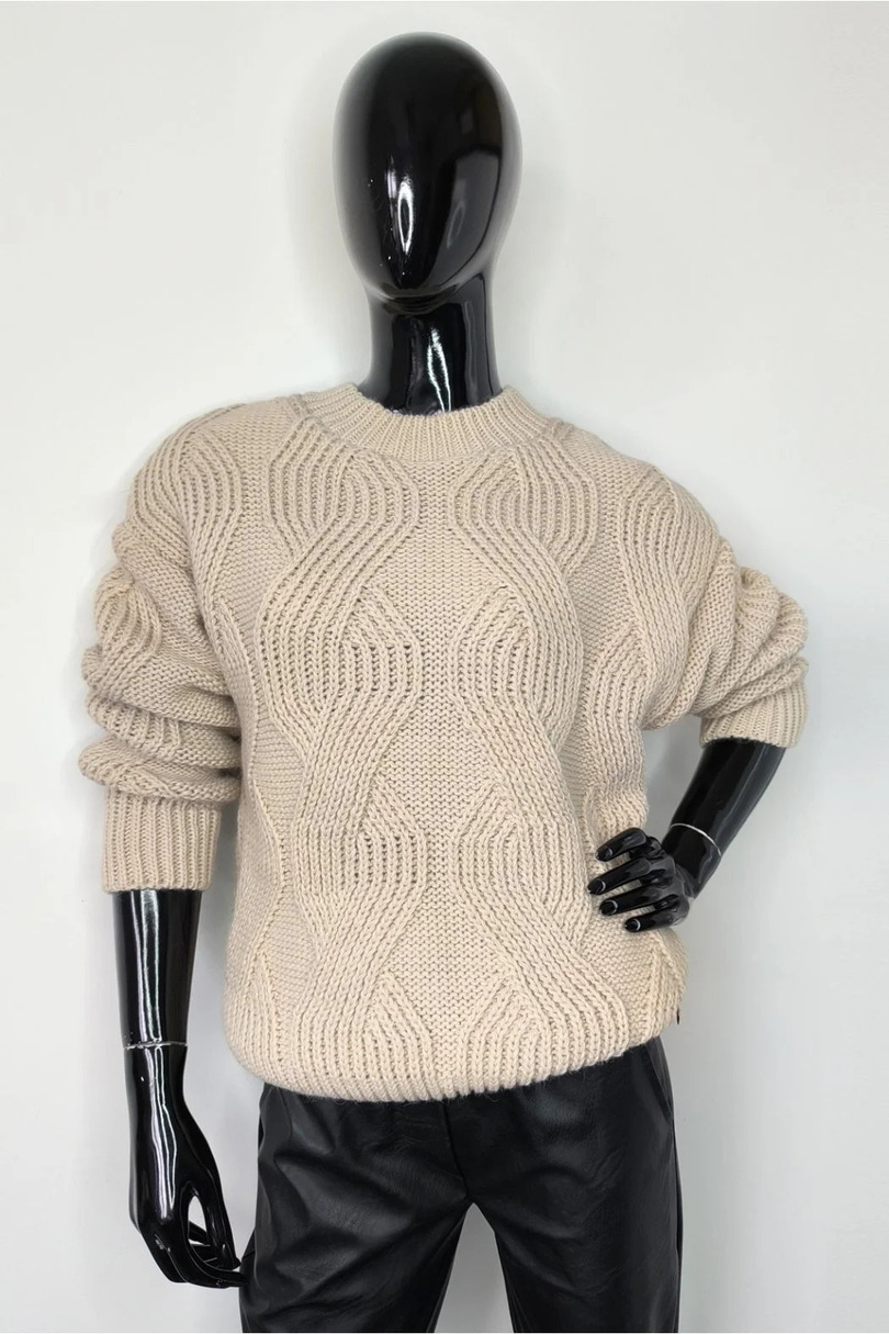 Светр Kemi – ідеальний вибір для холодних днів для тих, хто цінує комфорт, стиль та позачасову елегантність. Виготовлений з м’якої, приємної на дотик в’язки з ефектним тривимірним плетінням, він забезпечує високий комфорт та чудову теплоізоляцію. Його класичний крій у поєднанні з трохи оверсайз силуетом робить його ідеальним доповненням як до повсякденних, так і до більш елегантних образів. Щільне декоративне плетіння додає характеру, а приємний на дотик матеріал, що не свербить, гарантує повний комфорт протягом усього дня. Ідеальний вибір для осені та зими.