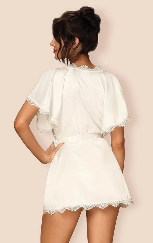 Чарівний атласний халат з мереживною обробкою. Зав'язки на поясі чудово підкреслюють талію. Цей елегантний дизайн ідеально підійде як для сніданку, так і для романтичного вечора удвох. Склад: 95% поліестер, 5% еластан.