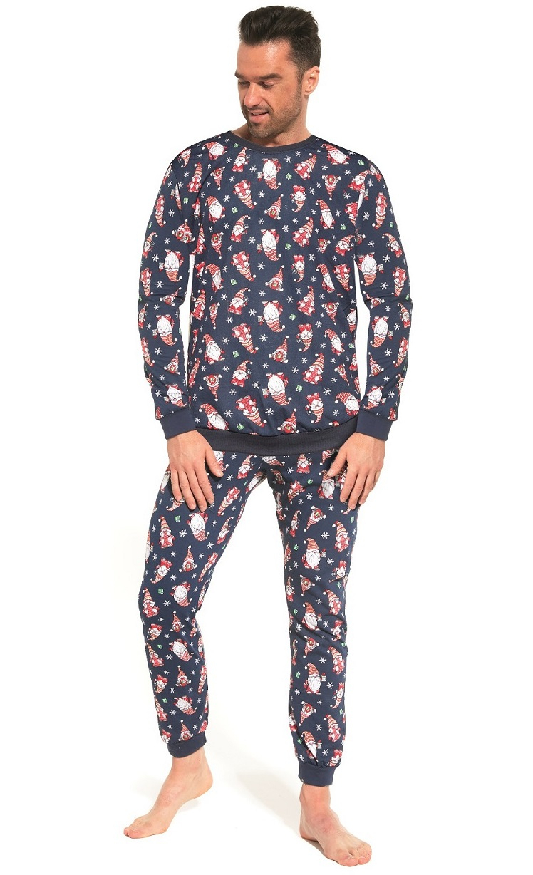 Чоловіча піжама з довгим рукавом, прикрашена кумедним різдвяним принтом. Штани з довгими штанинами, оздоблені рантом. Склад: 100% бавовна.