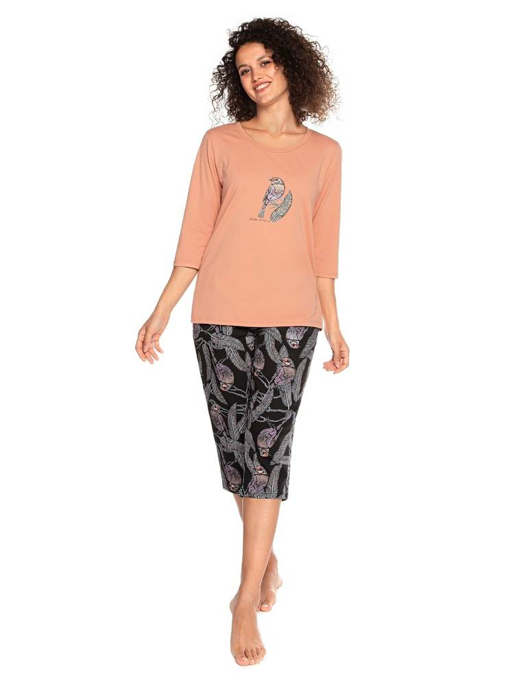 Жіноча піжама з високоякісної бавовни. Футболка з рукавом 3/4, штани з кишенями. Склад: 95% бавовна, 5% поліестер