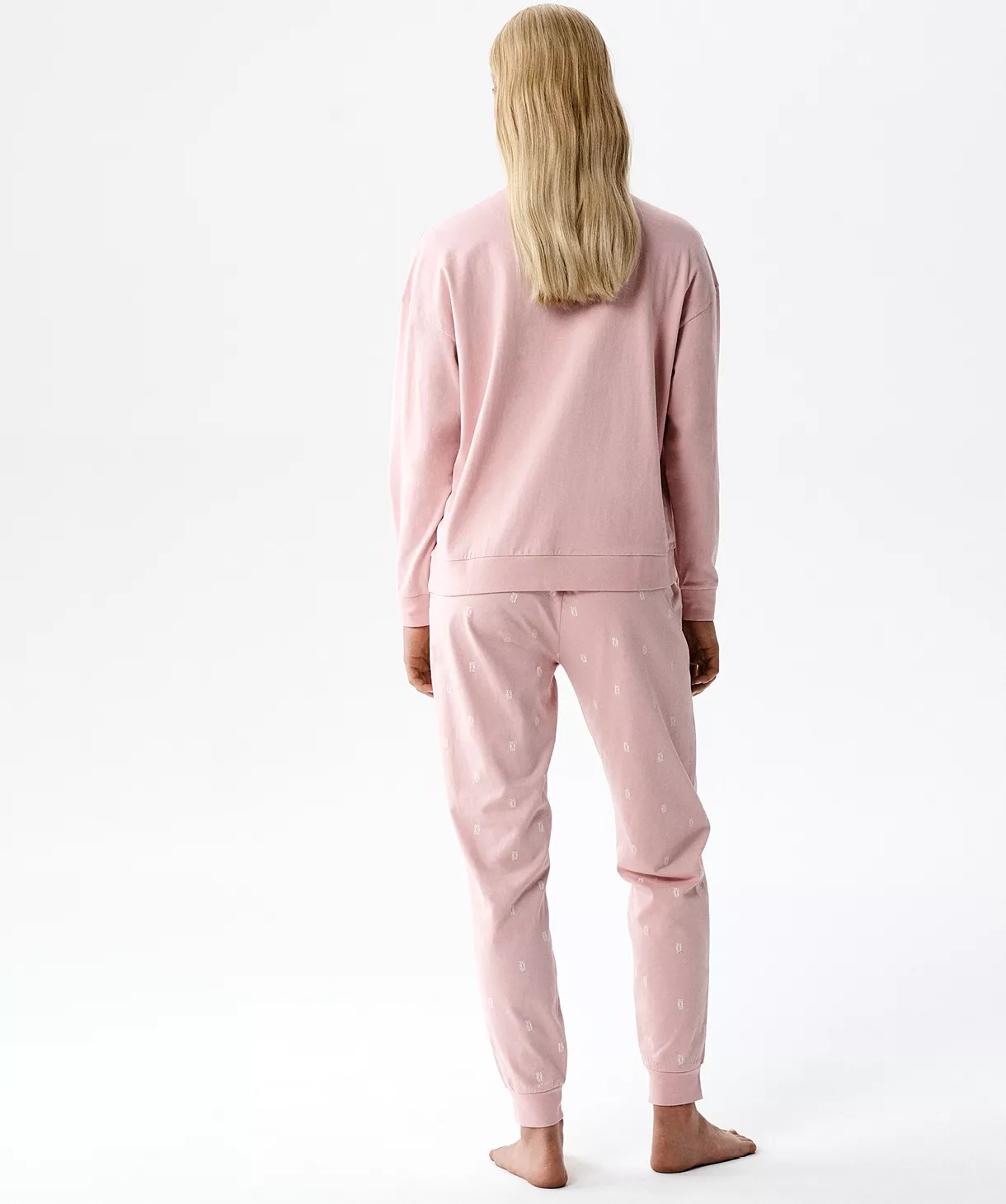 Жіноча піжама виготовлена з м'якої та приємної на дотик бавовняної трикотажної тканини, яка є приємною для шкіри, дихає та забезпечує тепловий комфорт. Матеріал достатньо міцний для щоденного носіння. Склад: 100% бавовна.
