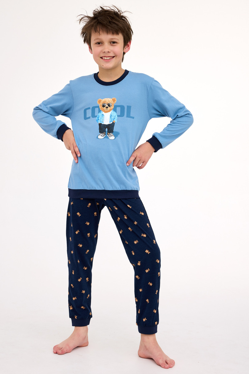Піжама для хлопчика DR 966/181 COOL 2 – це практичний та зручний комплект, розроблений для щоденного комфорту. Виготовлена з високоякісної м’якої бавовни, вона ніжна до шкіри та ідеально підходить для сну та відпочинку вдома. Футболка з довгими рукавами та круглим вирізом горловини прикрашена барвистим принтом чарівного ведмедика. Комплект включає довгі штани з цікавим візерунчастим принтом та еластичним поясом для комфортної посадки. Манжети, низ светра та штанини оздоблені еластичними манжетами для додаткового комфорту та надійної посадки. Весь комплект упакований в естетично привабливу коробку, що робить піжаму ідеальним подарунком.