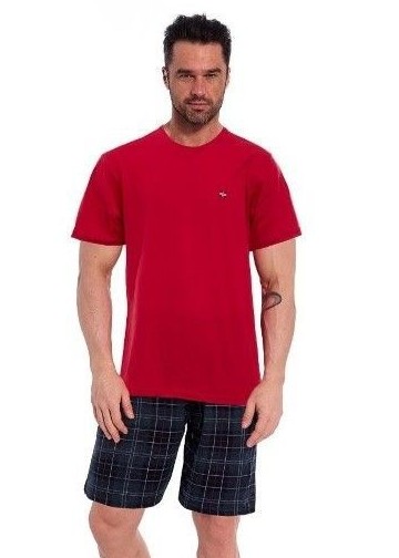 Чоловіча піжама з високоякісної, дихаючої бавовни. Футболка з короткими рукавами та невеликою аплікацією на грудях. Картаті шорти в комплекті. Вільний крій. Упаковано в поліетиленовий пакет. Склад: 100% бавовна.