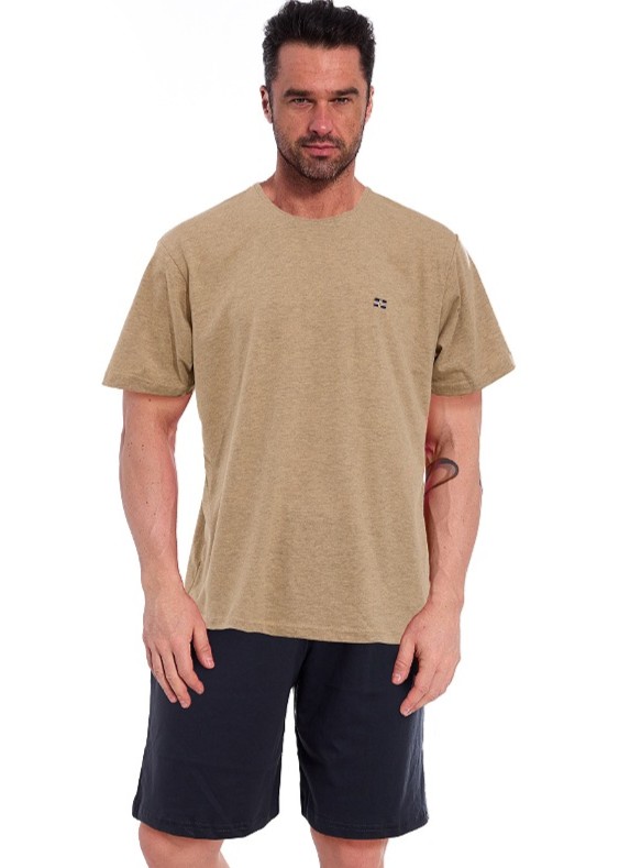Чоловіча піжама з високоякісної, дихаючої бавовни. Футболка з короткими рукавами та невеликою аплікацією на грудях. Картаті шорти в комплекті. Упаковано в пластик. Склад: футболка 92% бавовна, 8% поліестер; штани 80% бавовна, 20% поліестер.
