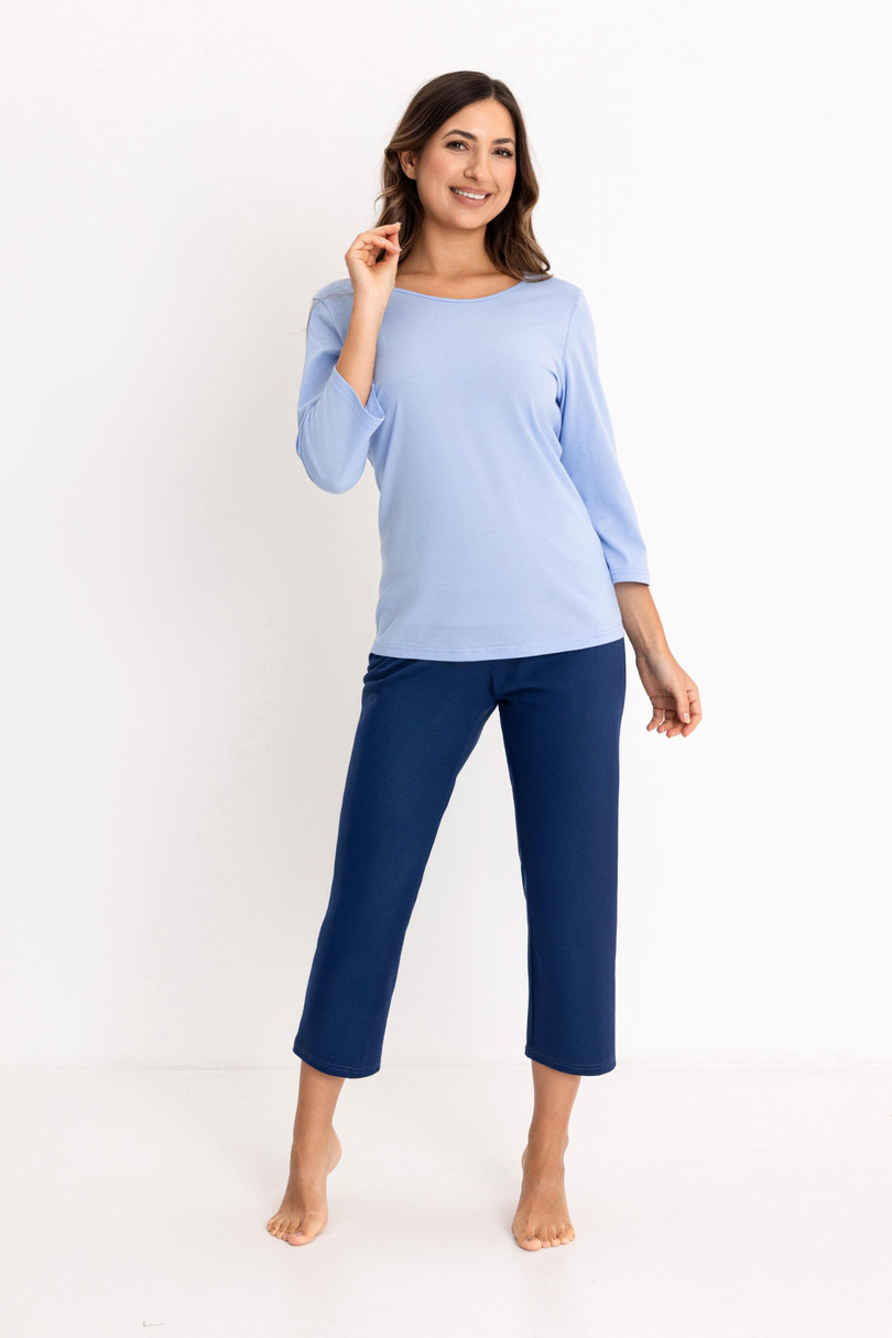 Жіноча піжама REGINA 744 W/26 – це зручна та стильна нічна сорочка, виготовлена зі 100% натуральної бавовни. М'яка, дихаюча тканина забезпечує комфортний сон і приємні відчуття на шкірі протягом усієї ночі. Топ з рукавами 3/4 та круглим вирізом гарантує свободу рухів та ідеальну посадку. Однотонні штани довжиною 7/8 додають сучасного вигляду, роблячи піжаму ідеальною не лише для сну, але й для відпочинку вдома. Еластичний пояс з бавовняною обробкою підвищує комфорт і запобігає утворенню точок тиску. Це ідеальний варіант для жінок, які цінують натуральні матеріали та класичний стиль.
