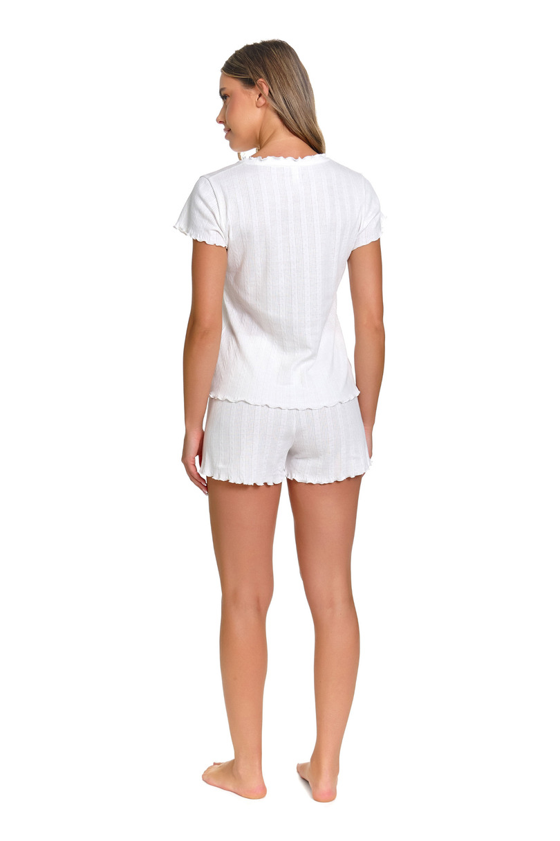 Жіноча піжама PM.7444 від DR NAP – це унікальне поєднання елегантності та класичного спортивного стилю, розроблене для жінок, які хочуть почуватися стильно та комфортно як вночі, так і вдень. Ця модель ідеально підходить як комплект для сну або як комфортний комплект для відпочинку вдома. Піжама виготовлена з ніжної ребристої бавовни, що надає комплекту витонченого шарму та неповторної естетики. Футболка та шорти оздоблені ніжною строчкою, що підкреслює жіночний характер комплекту та додає нотку легкості. Вільний крій гарантує повний комфорт та зручність у носінні, не обмежуючи рухів. Виріб виготовлено з максимальною ретельністю з високоякісних тканин, що забезпечує довговічність, естетику та комфорт. Це ідеальний вибір для жінок, які цінують вишукані деталі та натуральні матеріали.