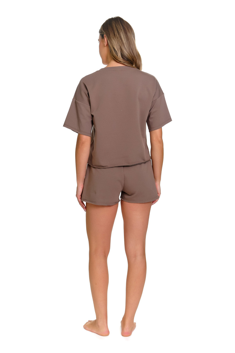 Жіноча піжама SET.7450 Dr. Nap – це сучасний комплект домашнього одягу, розроблений для жінок, які цінують комфорт, свободу та мінімалістичний стиль. Це ідеальне поєднання функціональності та модного повсякденного стилю, ідеально підходить для відпочинку, віддаленої роботи або повсякденних домашніх справ. Вільна футболка оверсайз із спущеними плечима забезпечує повну свободу рухів та комфорт на весь день. Її простий, сучасний дизайн додає легкого силуету та відповідає сучасним тенденціям. Шорти, з оптимальною довжиною, мають практичні кишені, що підкреслюють утилітарний характер комплекту. Еластичний пояс зі шнурком забезпечує ідеальну посадку без відчуття тісноти. Комплект виготовлений з високоякісної бавовни з еластаном (95% бавовна, 5% еластан), що робить тканину м’якою, дихаючою та злегка еластичною. Тканина чудово драпірується, забезпечуючи максимальний комфорт як під час сну, так і протягом активного дня вдома. Ретельно продумані деталі та міцні шви гарантують довговічність та естетичну привабливість навіть після численних прань. SET.7450 dr nap – це універсальний жіночий комплект, який поєднує комфорт із сучасною простотою – обов'язкова річ для будь-якого домашнього гардеробу.