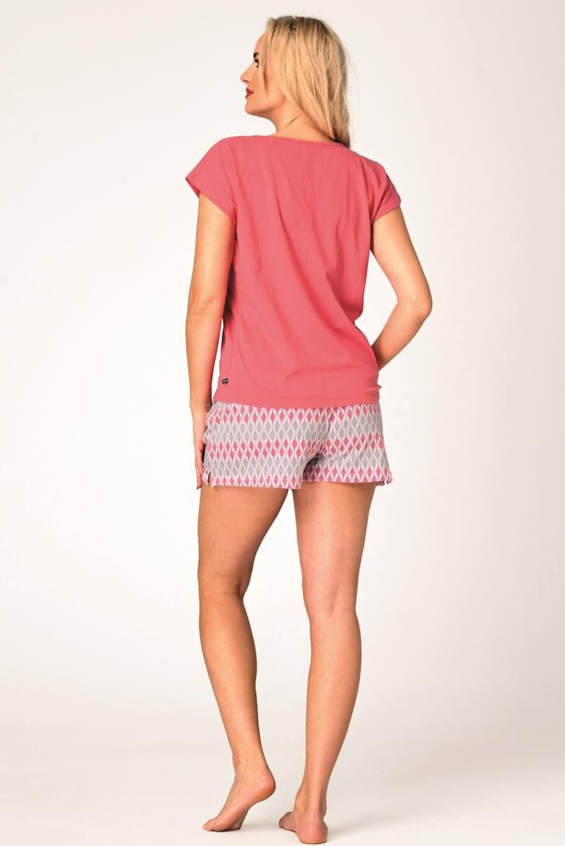 Жіноча піжама з високоякісної бавовни. Топ з короткими рукавами та блискучими стразами. Візерунчасті шорти вільного крою. Склад: 95% бавовна, 5% еластан.
