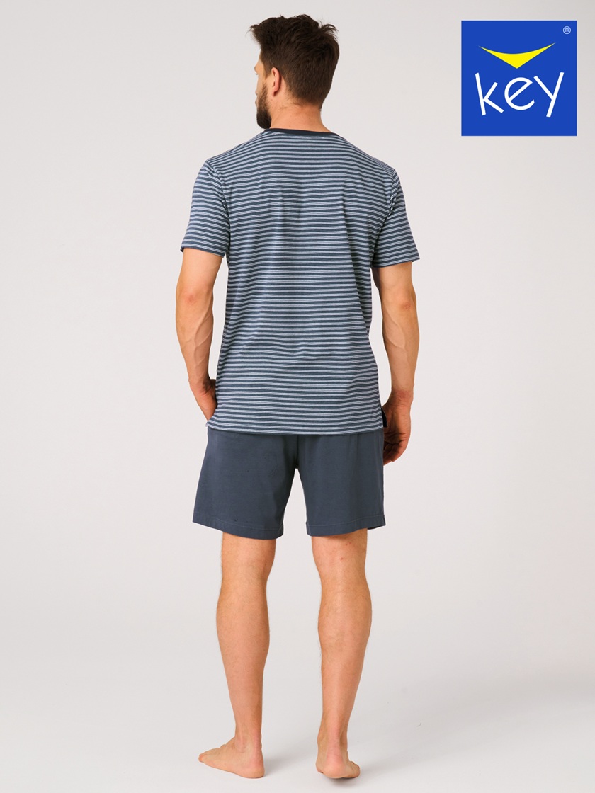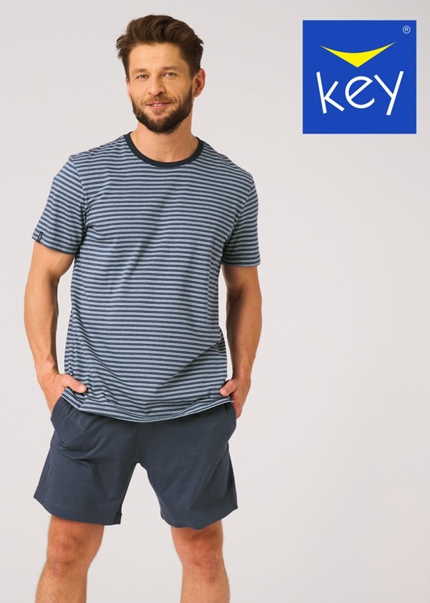 Чоловіча піжама з високоякісної, вишуканої, антиалергенної бавовни забезпечує чудову повітропроникність та комфорт. Футболка з короткими рукавами в дрібну смужку. Короткі, однотонні шорти зі зручними кишенями. Склад: 100% бавовна.