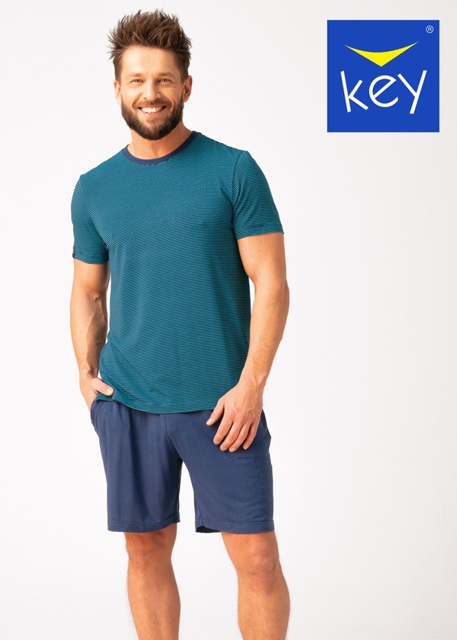 Чоловіча піжама з високоякісних, натуральних, гіпоалергенних волокон забезпечує чудову повітропроникність та комфорт. Футболка з короткими рукавами в дрібну смужку. Короткі, однотонні шорти зі зручними кишенями. Склад: 95% бамбук, 5% еластан.