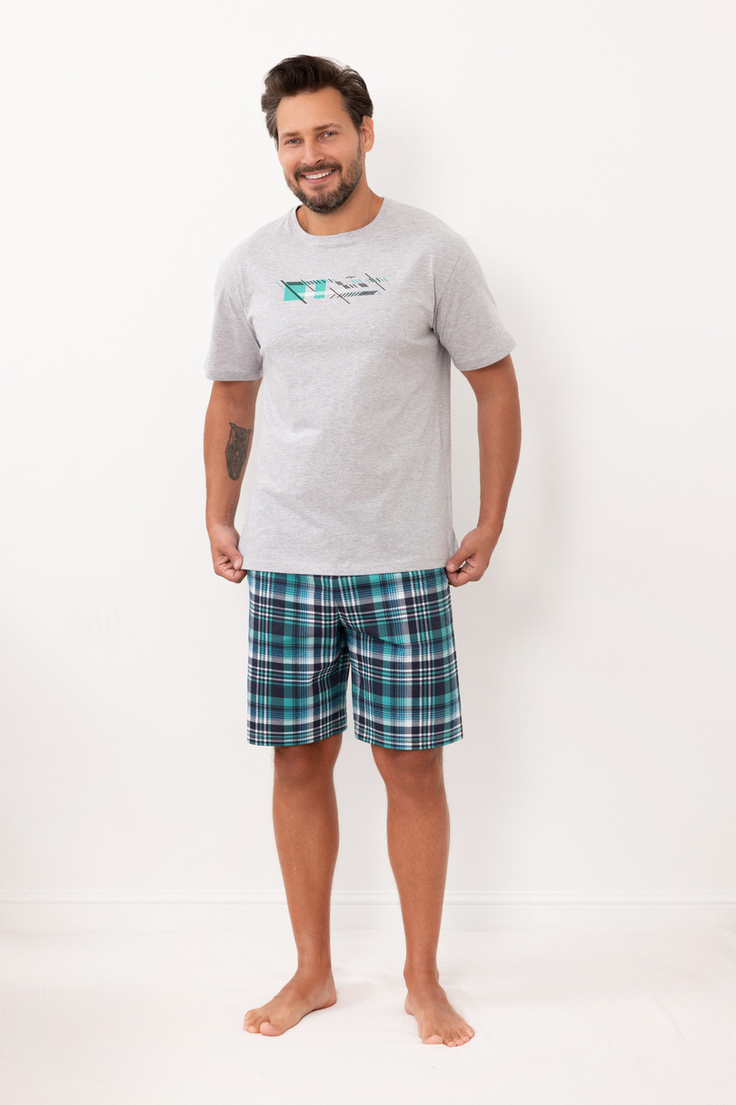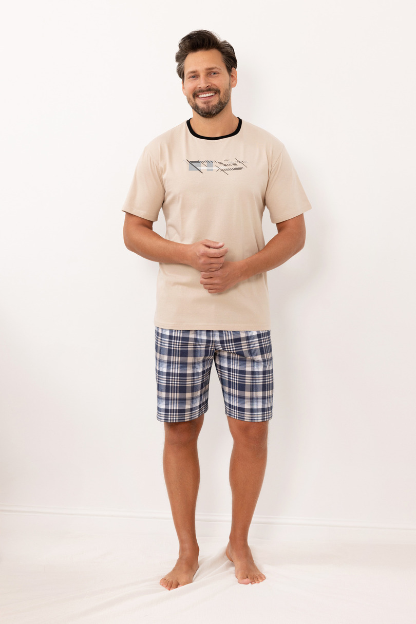 Чоловіча піжама Regina 6001 L/26 – це ідеальне поєднання комфорту, функціональності та позачасового стилю. Виготовлена зі 100% високоякісної бавовни, вона забезпечує чудову повітропроникність та комфорт як у теплі, так і в прохолодні ночі. Футболка з короткими рукавами приглушеного бежевого кольору доповнена тонким принтом на грудях та контрастною обробкою на вирізі горловини, що надає виробу сучасного вигляду. Класичні шорти в клітинку ідеально поєднуються з верхом, створюючи цілісний та стильний комплект. Еластичний пояс забезпечує ідеальну посадку без відчуття скутості. Доступна у трьох різних кольорах, кожен чоловік може вибрати варіант, який найкраще відповідає його стилю. Це ідеальний вибір як для сну, так і для відпочинку вдома. Склад: 100% бавовна