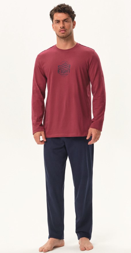Чоловіча піжама з високоякісної бавовни. Толстовка з довгим рукавом і напівкруглим вирізом, з принтом спереду. Довгі штани контрастного кольору. Склад: 100% бавовна.