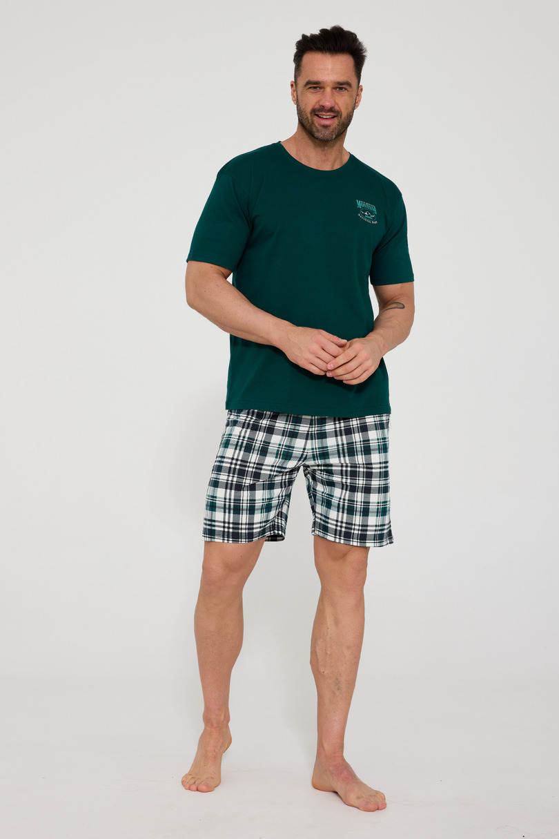 Чоловіча піжама Cornette KR 326/212 Montana – це класичний та зручний комплект, виготовлений зі 100% високоякісної бавовни. Натуральний, дихаючий матеріал забезпечує комфортний сон, належну циркуляцію повітря та приємну м'якість на дотик. Це ідеальний вибір для чоловіків, які цінують комфорт та позачасовий стиль. Футболка з короткими рукавами має круглий виріз для зручності носіння та універсального образу. Невеликий принт на грудях додає мінімалістичного шарму. Комплект доповнено шортами з класичним візерунком у клітинку. Зручний еластичний пояс з бавовняною обробкою забезпечує щільну та комфортну посадку без будь-якого тиску. Цей практичний та зручний чоловічий піжамний комплект ідеально підходить для теплих вечорів та щоденного відпочинку вдома. Склад: 100% бавовна.