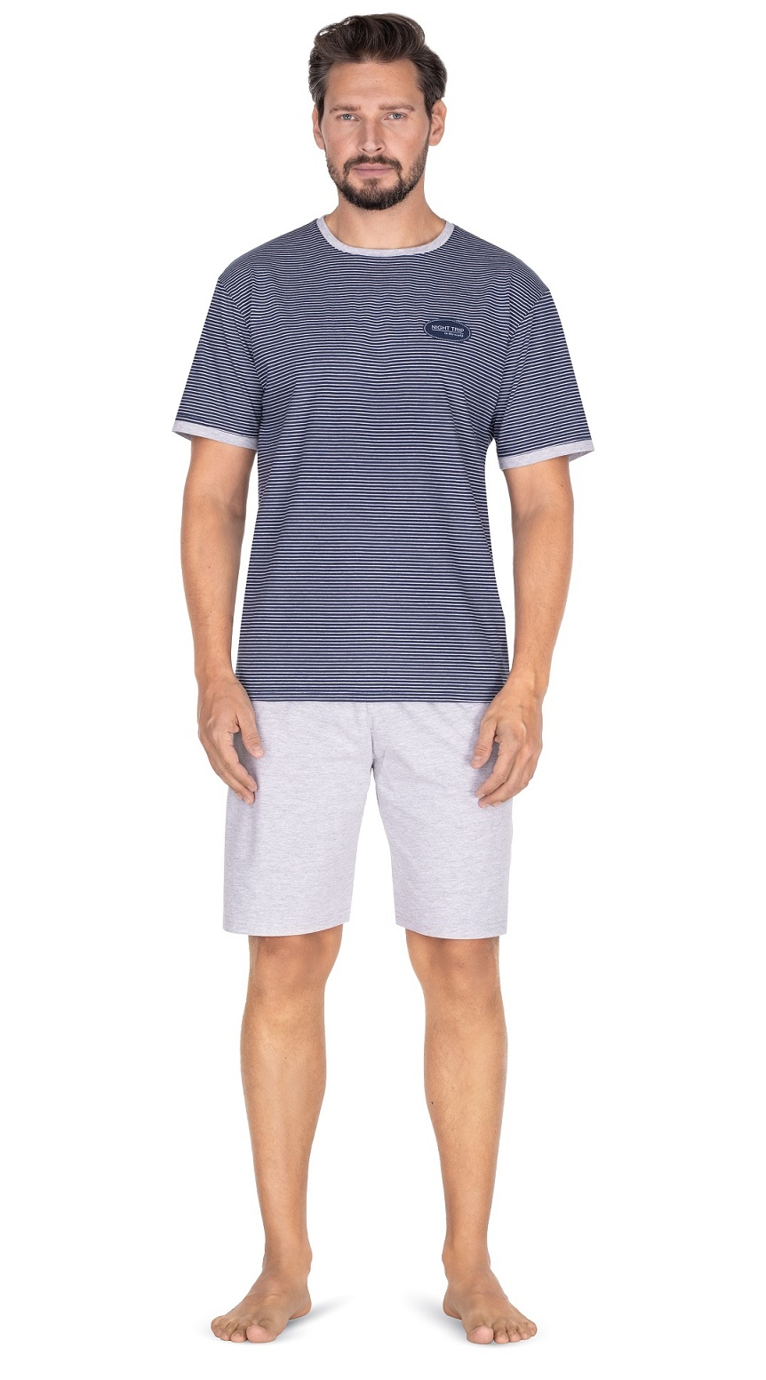 Чоловіча піжама з високоякісної бавовни. Короткий рукав, короткі шорти. Блуза в смужку, однотонні шорти. Склад: 100% бавовна.