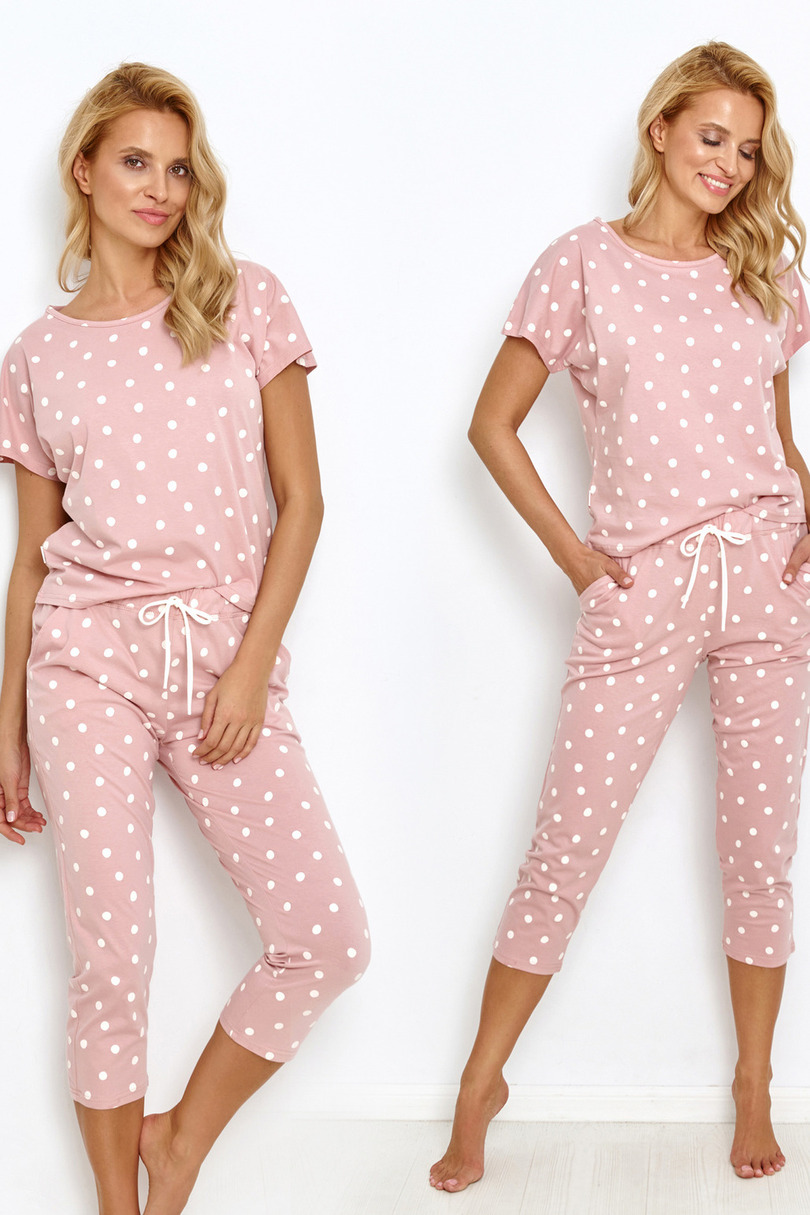 Жіноча піжама в горошок з високоякісної бавовни. Блуза з коротким рукавом, укорочені брюки. Склад: 100% бавовна.