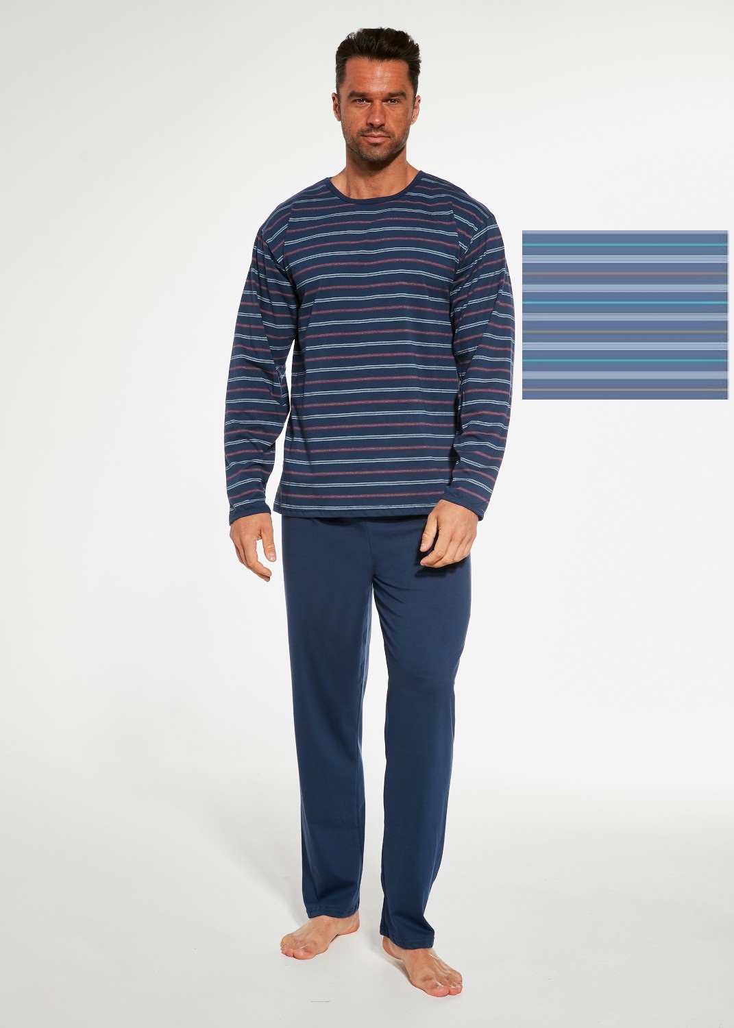 Чоловіча піжама з високоякісної бавовни. Футболка в смужку з довгим рукавом. Штани довгі, форма. Склад: футболка 90% бавовна, 10% поліестер; штани 100% бавовна.
