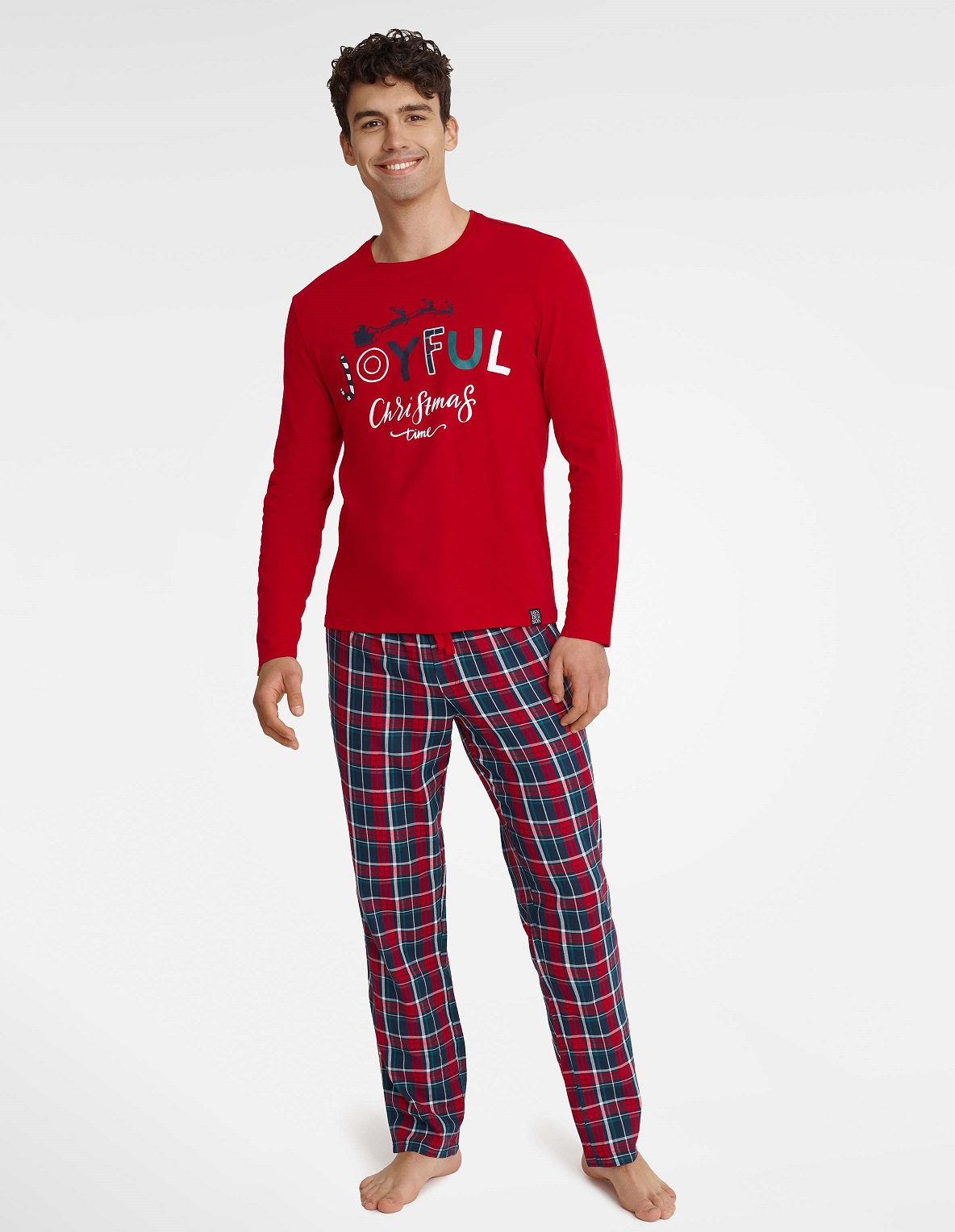 Чоловіча піжама з високоякісної бавовни. Блуза з довгим рукавом прикрашена аплікацією, довгі брюки в модну клітку. Склад: 100% бавовна.