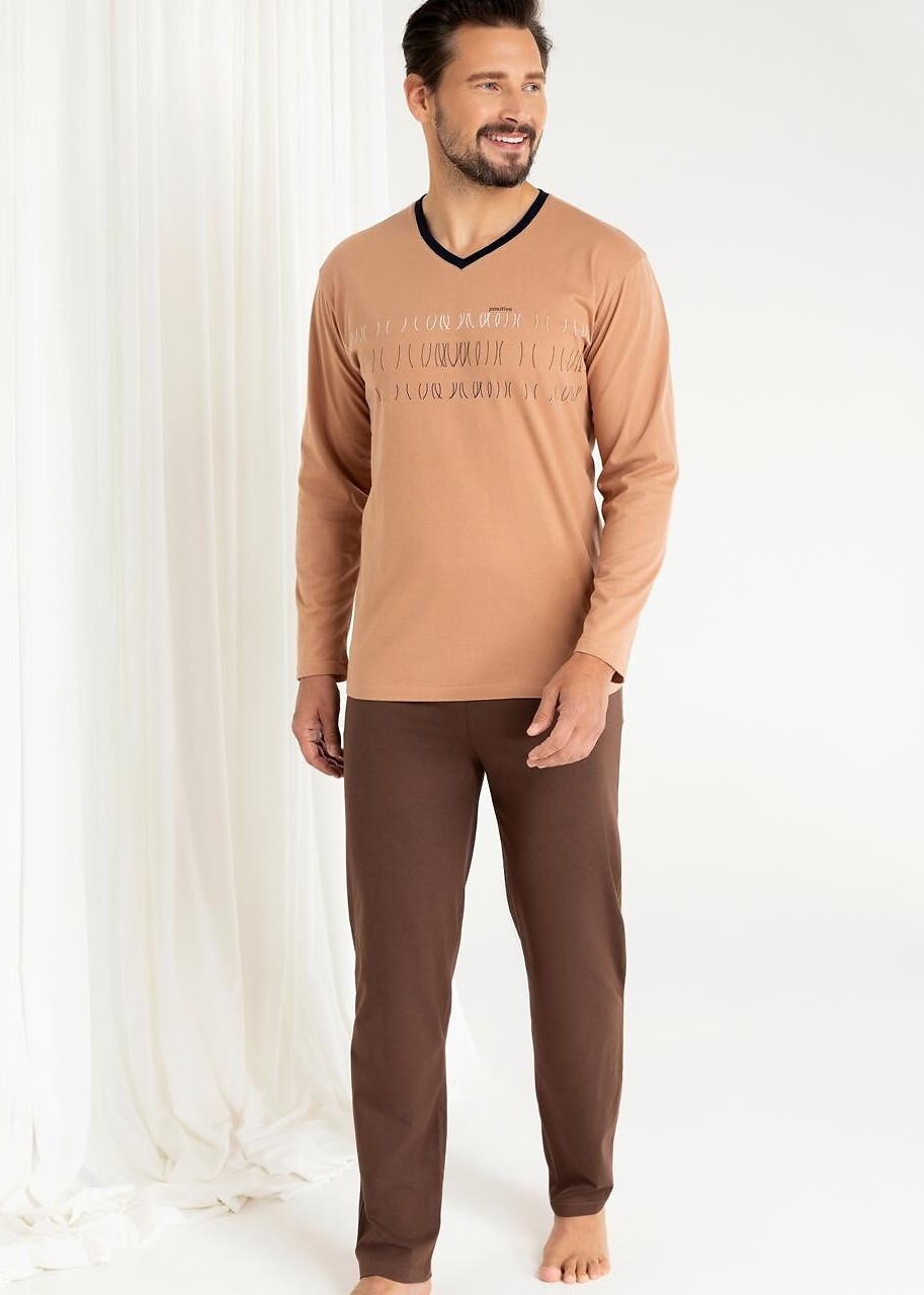 Чоловіча піжама 495 BIG J/25 від відомого бренду Regina поєднує в собі класичний стиль, комфорт та якість. Виготовлена зі 100% м'якої, дихаючої бавовни, вона забезпечує комфорт та свободу рухів протягом усієї ночі. Футболка з довгими рукавами має V-подібний виріз та декоративний принт спереду, що надає їй сучасного вигляду. Довгі штани прямого крою доповнюють образ, створюючи практичний та стильний комплект для сну або відпочинку вдома. Ідеально підходить для прохолодних вечорів та ранків.