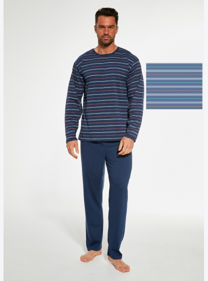Чоловіча піжама з довгими рукавами. Блузка в смужку, довгі штани з вільним кроєм. Штани мають зручні..