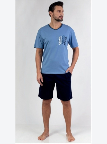 Класична чоловіча піжама з коротким рукавом з високоякісної бавовни. Футболка з малюнком і V-подібни..