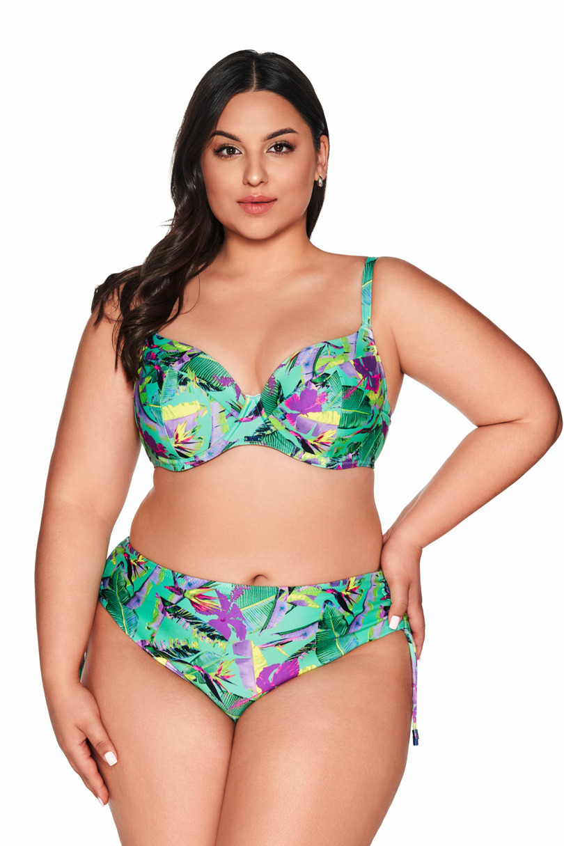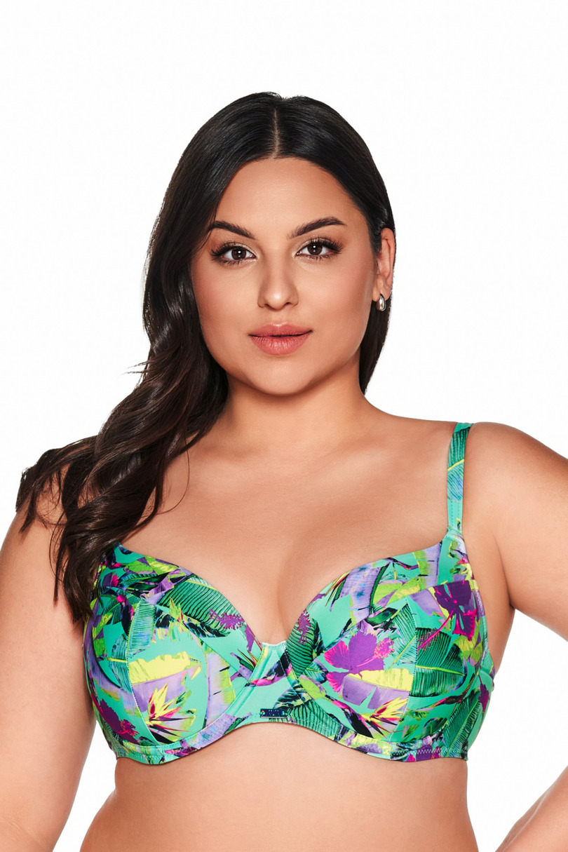 Цей плавальний бюстгальтер з підкладкою, що поєднує зелений, неоновий та фіолетовий кольори, створює враження спекотного літа. Елегантність у поєднанні з природними мотивами ідеально підходить для тропічної відпустки. Пластина та застібка додають нотку шику, а також мають унікальний голографічний блиск. Чашечки з еластичного матеріалу та пінопластової підкладки забезпечують ідеальну посадку, підкреслюючи ваші переваги та надаючи вам відчуття особливої. Бретелі забезпечують чудову підтримку грудей та комфорт. Склад матеріалу: 80% поліамід, 20% еластан.