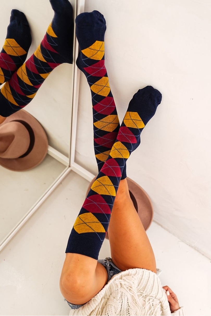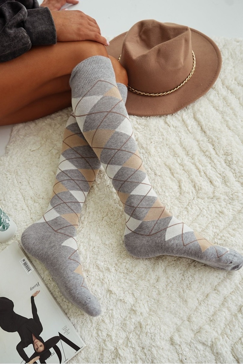 Жіночі шкарпетки до коліна з візерунком, виготовлені з бавовни найвищої якості. Ідеальний вибір для доповнення будь-якого стилю.