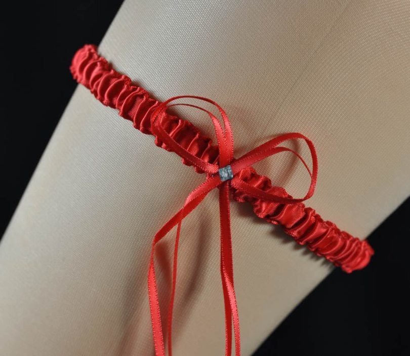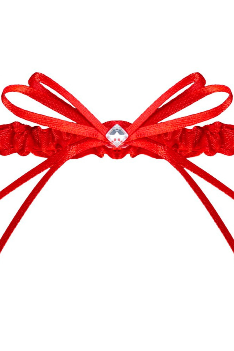 Ця вузька червона підв'язка ніжно підкреслить унікальність вашого випускного вечора. Ця яскрава червона атласна підв'язка прикрашена подвійним бантом та кришталевою петелькою в тон. Виготовлена з 90% поліестеру, 10% еластану.