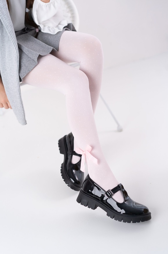 Колготки для дівчинки з візерунком і вшитою аплікацією у вигляді банта. Склад: поліамід 95%, еластан 5%