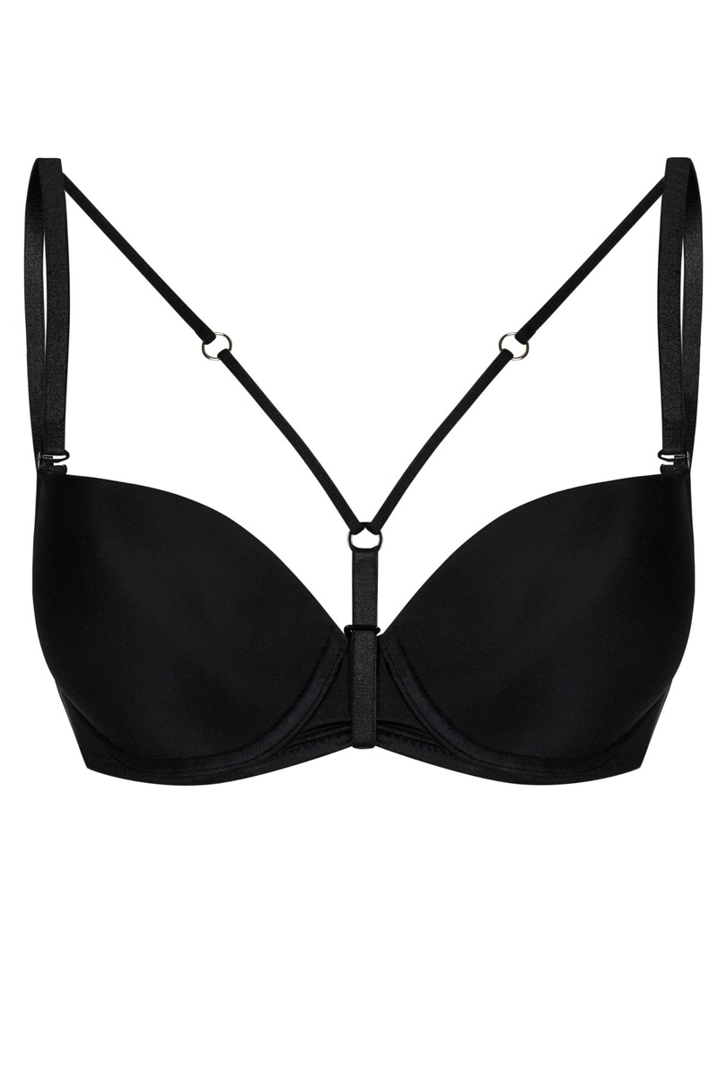 Чорні декоративні бретельки. Просто відстібніть бретельки від бюстгальтера, прикріпіть бретельки ДЕКОЛЕ до бюстгальтера так, щоб регулятор довжини був ззаду, протягніть застібку зверху навколо перенісся між чашечками та зачепіть гачок на кінці бретельки за тунель під кільцем. Відрегулюйте бретельки та довжину бретельки навколо перенісся, регулюючи їх для вашого комфорту та відповідно до розміру бретельок ДЕКОЛЕ, і все готово.