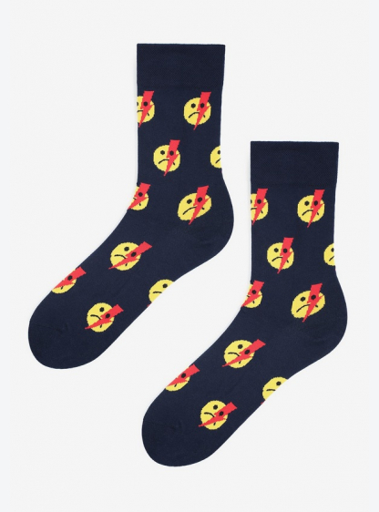 Чоловічі шкарпетки з смайликами із сумними обличчями та блискавками з високоякісної бавовни. Рівний ..