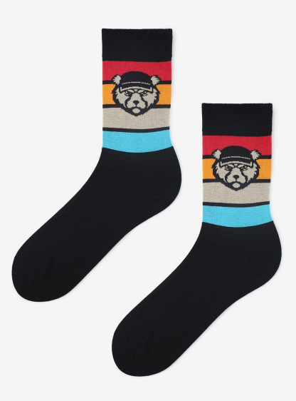 Чоловічі шкарпетки з смужками зверху та головою ведмедя. Виготовлений з натуральної бавовни найвищої..