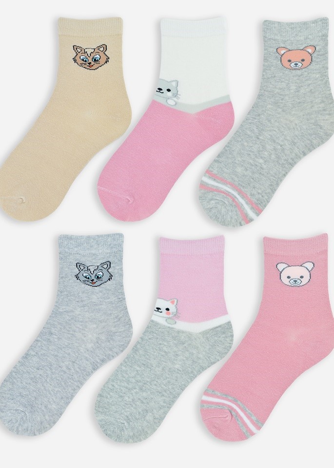 Гарні візерунчасті бавовняні шкарпетки для хлопчика зі зручною манжетою та плоским швом. Вони ідеально прилягають до стопи, забезпечуючи комфорт під час носіння. Візерунки упаковані випадковим чином. Склад: 70% бавовна, 25% поліамід, 5% еластан.
