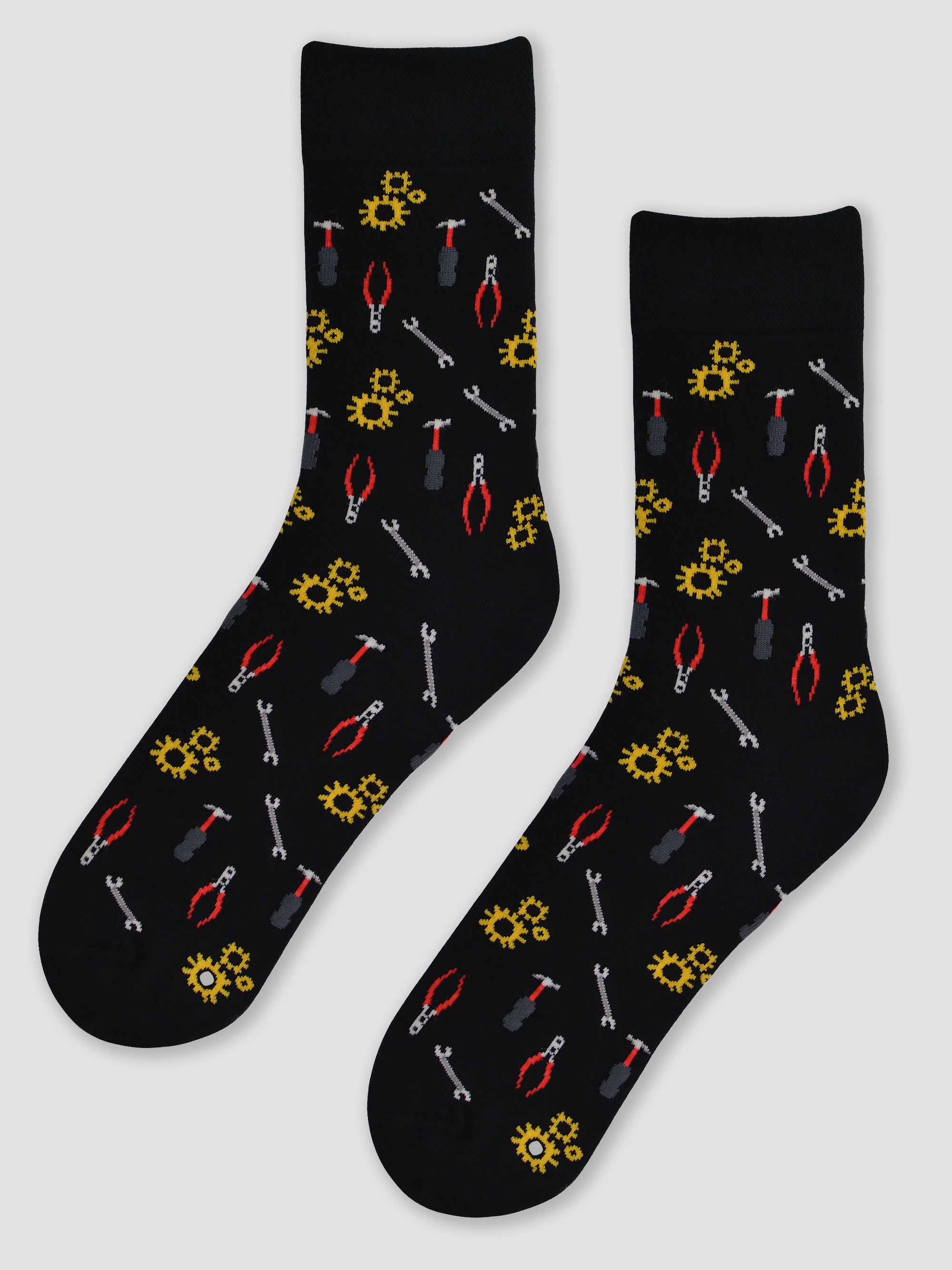 Чоловічі шкарпетки з малюнком з приємної бавовни. Шкарпетки з цікавим дизайном. Мають зручний манжет і плоский шов. Склад: 80% бавовна, 18% поліамід, 2% еластан.
