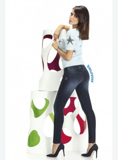 Темно-сині легінси для схуднення під джинси. Модель із завищеною талією. Широка стискаюча гумка на т..