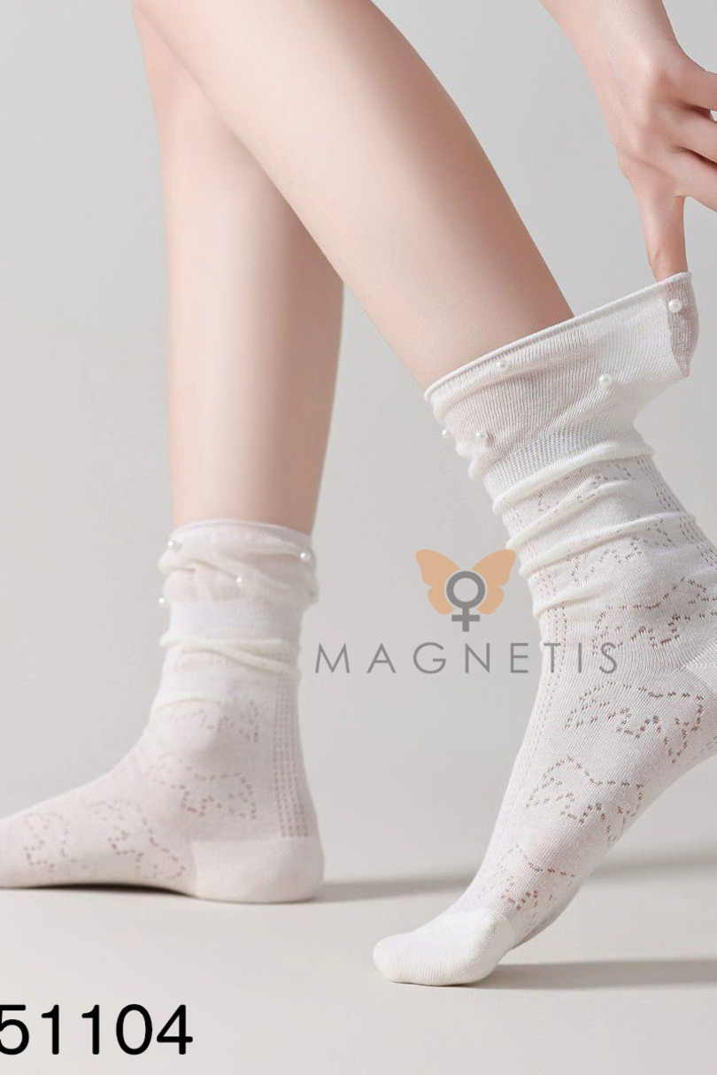 Жіночі шкарпетки Magnetis CC-251104 – це елегантна модель з витонченим візерунком, яка поєднує класичний стиль із модним, жіночним оздобленням. Візерунчаста структура та ніжні перлинні прикраси надають цим шкарпеткам унікального характеру, ідеально доповнюючи як повсякденні, так і більш елегантні образи. Високий вміст бавовни (75%) забезпечує чудову повітропроникність та комфорт протягом усього дня, а додавання поліаміду (15%) та еластану (5%) гарантує еластичність та ідеальну посадку. Модель CC-251104 від Magnetis поєднує в собі якість, комфорт та позачасовий дизайн.