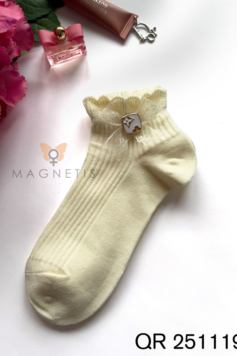 Жіночі шкарпетки Magnetis QR-251119 з аплікацією – це елегантний та стильний аксесуар, який поєднує класичний ребристий дизайн з жіночними деталями. Тонкий мереживний бант та декоративна емблема додають унікального, романтичного штриха дизайну. Ці модні візерунчасті шкарпетки ідеально доповнять як повсякденний, так і більш елегантний одяг. Високий вміст бавовни (92%) забезпечує природну повітропроникність, м'якість та комфорт протягом усього дня. Додавання еластану (8%) гарантує еластичність та ідеальну посадку, забезпечуючи, щоб шкарпетки не ковзали та зберігали свою форму навіть після численних прань. Ребриста структура чудово драпірується по нозі, підкреслюючи її форму. QR-251119 чудово поєднуються з балетками, лоферами, кросівками та взуттям. Вони є чудовим вибором для жінок, які цінують високу якість, комфорт та модні деталі у своєму гардеробі.