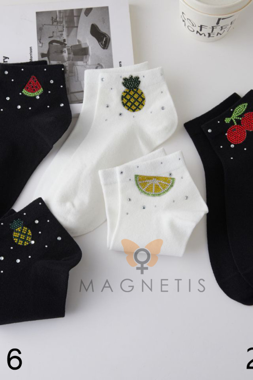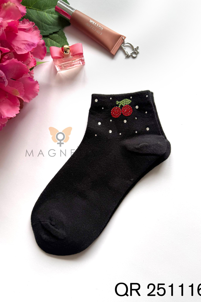 Жіночі шкарпетки Magnetis QR251116 05 з аплікацією – це модний та жіночний аксесуар, який привертає увагу своїми стильними деталями. Класичний чорний колір прикрашений яскравою вишневою аплікацією та тонкими декоративними елементами, що надає всьому образу унікального та дівочого характеру. Ці візерунчасті шкарпетки ідеально підходять для жінок, які люблять виділятися модними акцентами. Високий вміст бавовни (92%) забезпечує чудову повітропроникність, м’якість та комфорт протягом усього дня. Додавання еластану (8%) гарантує, що шкарпетки ідеально прилягають до стопи, запобігаючи тиску та ковзанню під час використання. Матеріал приємний на дотик і стійкий до деформації, що гарантує, що шкарпетки зберігають свою форму навіть після численних прань. Модель QR251116 05 ідеально підходить для повсякденного, міського та спортивного стилів. Вони чудово поєднуються з кросівками, кедами, лоферами та ботильйонами. Шкарпетки Magnetis з аплікацією поєднують комфорт, якість та модний дизайн.
