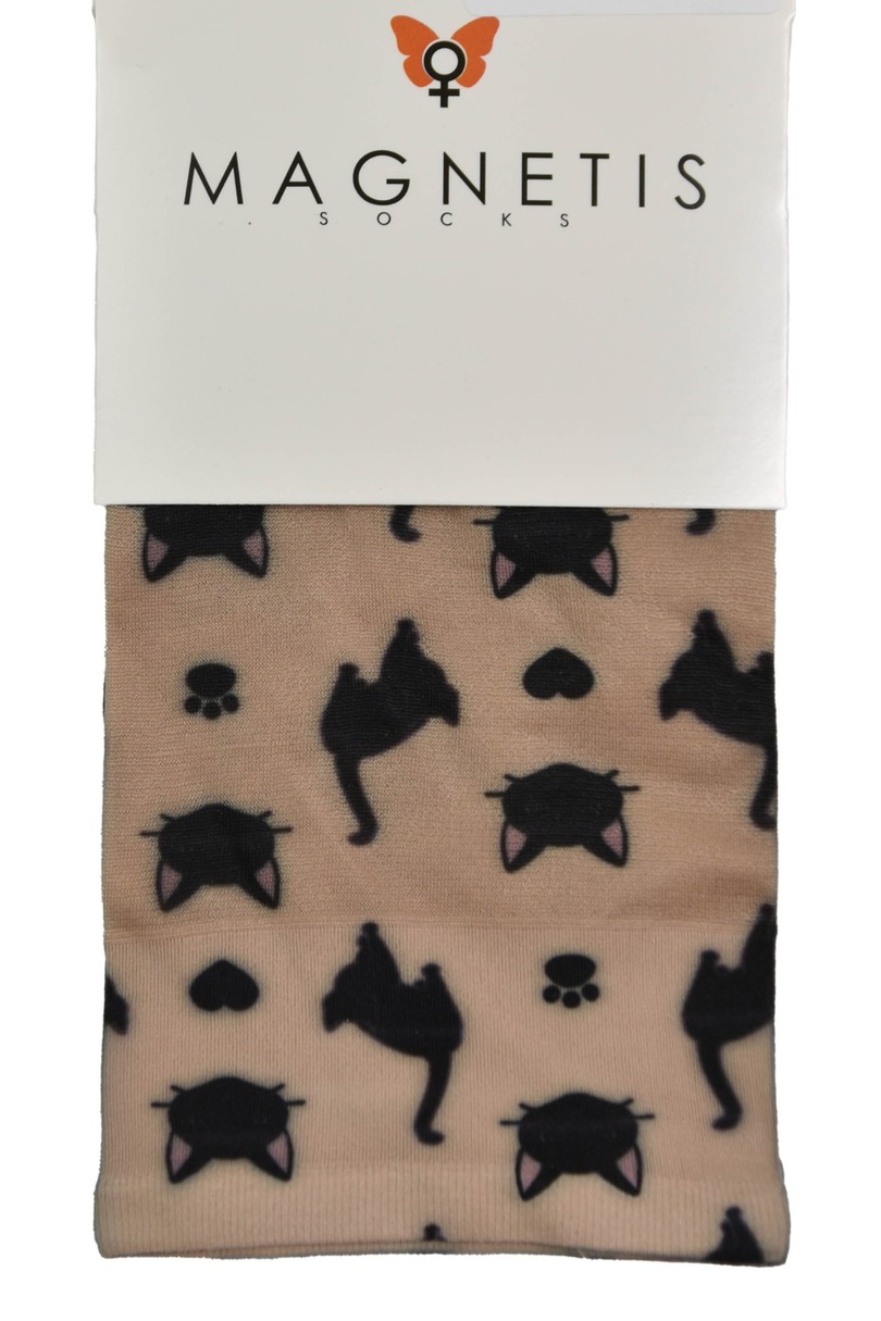 Додайте нотку шарму та гумору до свого гардеробу з колготками MAGNETIS з чарівним мотивом чорного кошеняти! Цей стиль поєднує в собі комфорт, якість та унікальний стиль. Прозора бежева тканина прикрашена грайливим, повторюваним візерунком, що зображує силуети котів, лапи та мордочки з вушками. Виготовлені з м'якого та еластичного матеріалу (88% поліаміду та 12% еластану), ці колготки ідеально сидять, забезпечуючи комфорт та довговічність протягом усього дня. Вони стануть чудовим вибором для всіх любителів котів та унікальних аксесуарів.