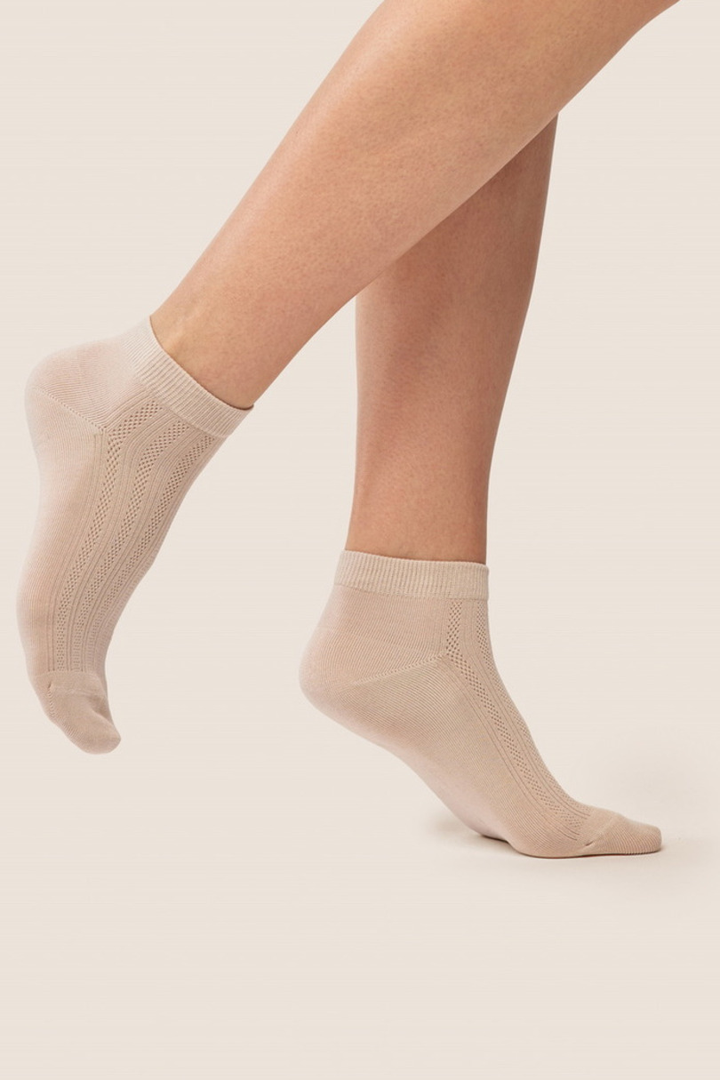 Бавовняні шкарпетки Gabriella SW/087 – це стильний варіант для жінок, які цінують комфорт та витончений дизайн. Виготовлені з високоякісної бавовни, вони забезпечують чудову повітропроникність та комфорт протягом усього дня. Ніжний ажурний візерунок надає їм легкості та елегантності, що робить їх ідеальним доповненням як до повсякденного, так і до більш жіночного одягу. Еластична манжета забезпечує ідеальну посадку без тиску, а додавання еластану та поліаміду підвищує міцність та стійкість до деформації.
