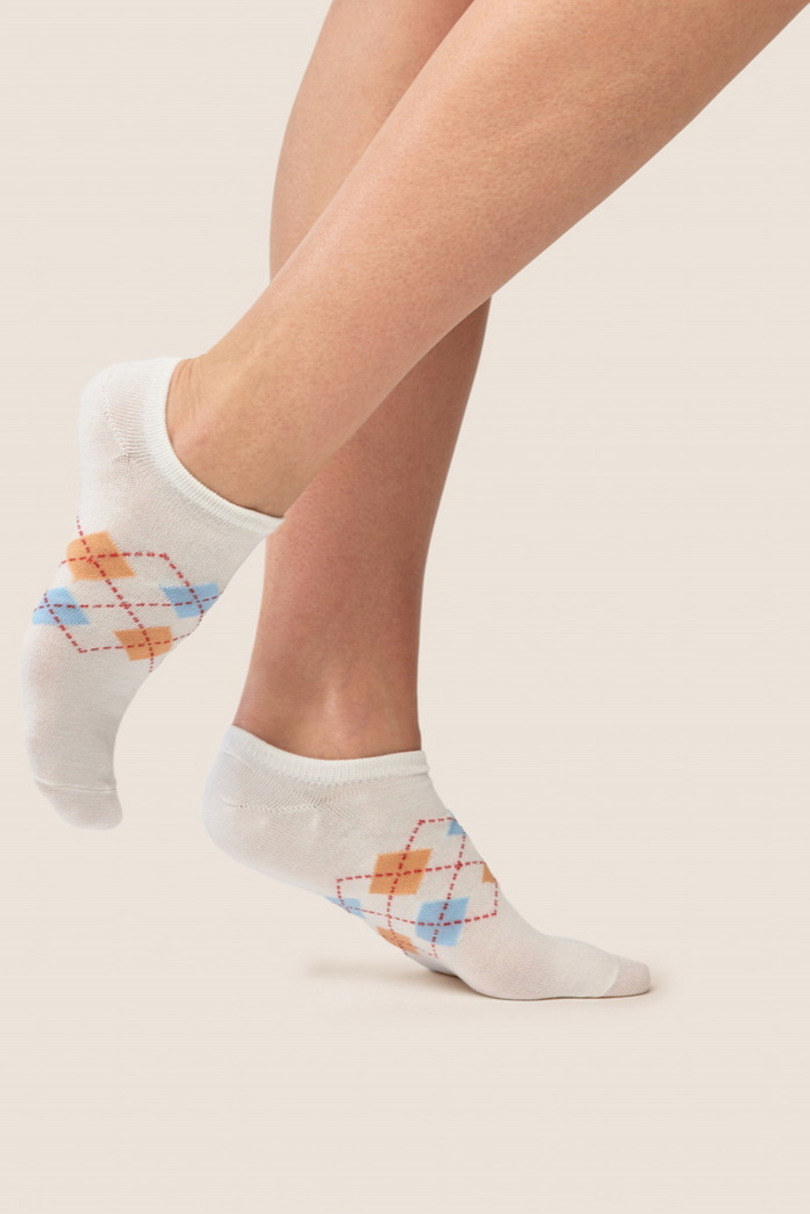 Бавовняні шкарпетки Gabriella SW/095 – це стильний та зручний варіант для жінок, які цінують класичний дизайн із сучасним відтінком. Виготовлені з високоякісної бавовни (90%), вони забезпечують чудову повітропроникність, м’якість та комфорт протягом усього дня. Модний геометричний візерунок у формі ромбів надає їм позачасового характеру та робить їх ідеальним доповненням як до повсякденного, так і до повсякденного одягу. Низький виріз робить їх непомітними під взуттям, а еластична обробка забезпечує ідеальну посадку без тиску. Додавання поліаміду та еластану підвищує міцність та стійкість до деформації.