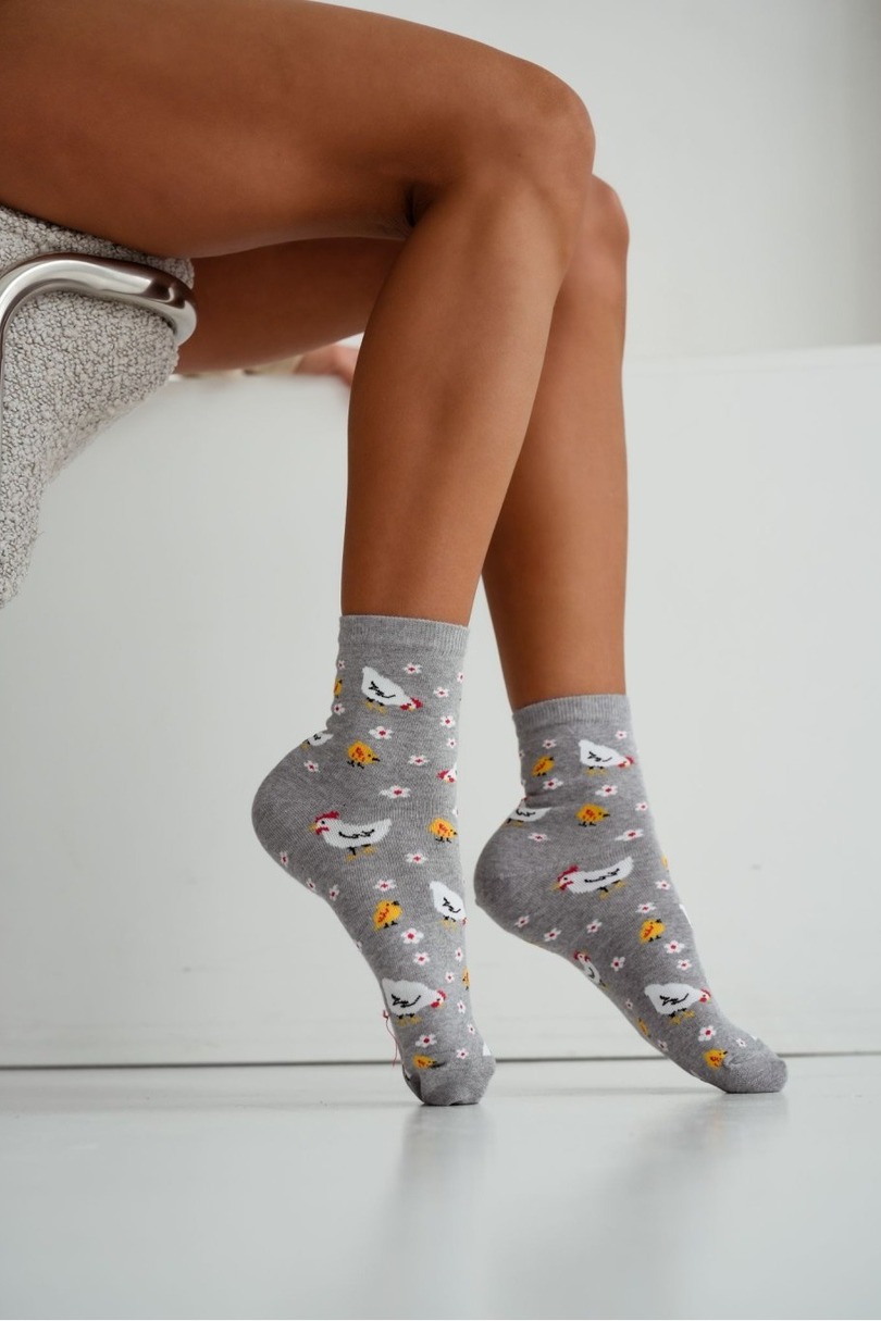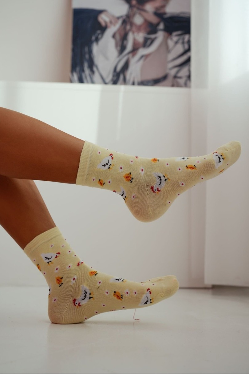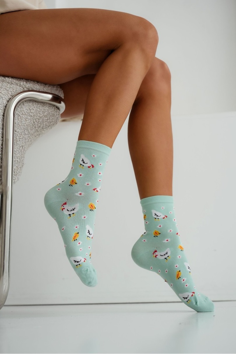 Жіночі шкарпетки MILENA Hens and Chicks 0200.219 зручні та стильні з оригінальним, кумедним візерунком, що зображує курочок та курчат. Вони ідеально підходять для тих, хто любить виділятися цікавими аксесуарами у своєму повсякденному одязі. Високий вміст бавовни (75%) робить шкарпетки м’якими, дихаючими та зручними для носіння протягом усього дня. Поліамід (20%) підвищує міцність та стійкість матеріалу до стирання, а еластан (5%) забезпечує належну еластичність та гарну посадку. Завдяки ретельному виготовленню шкарпетки зберігають свою форму та яскраві кольори навіть після численних прань. Ці візерунчасті шкарпетки MILENA ідеально підходять як для дому, так і для щоденного носіння.