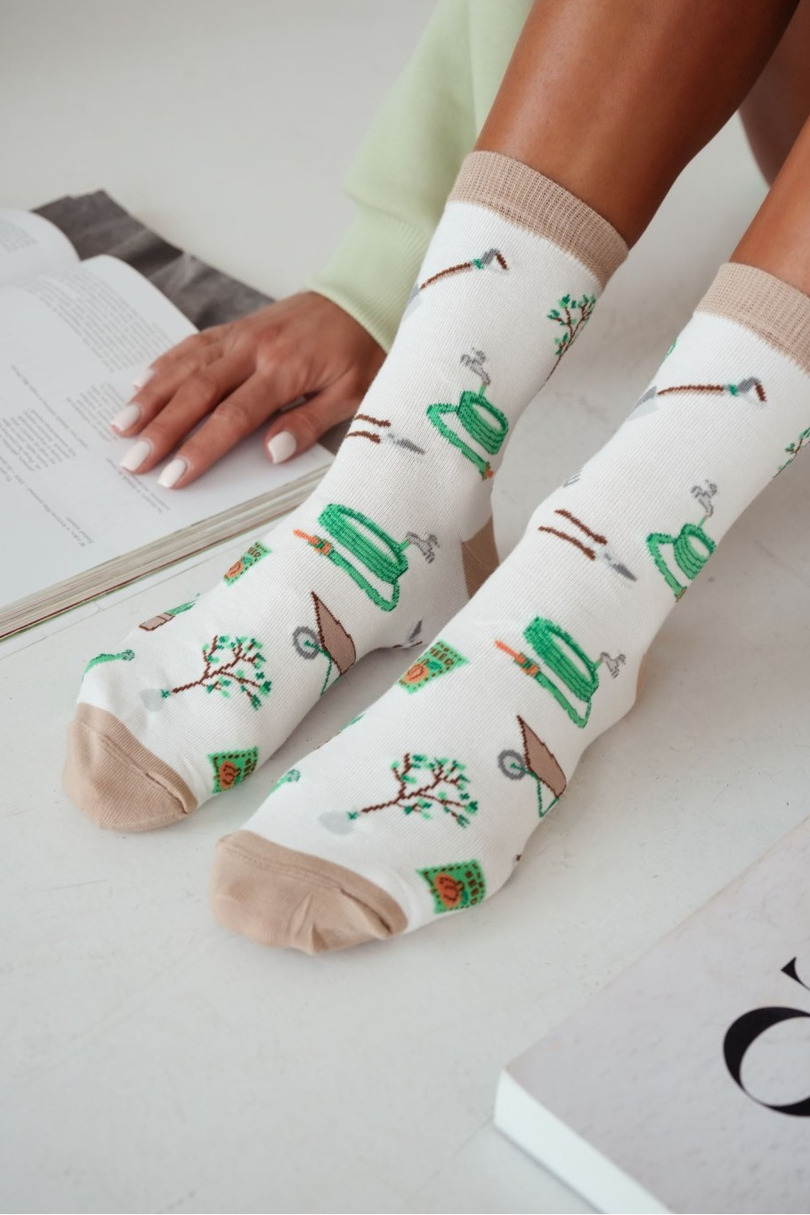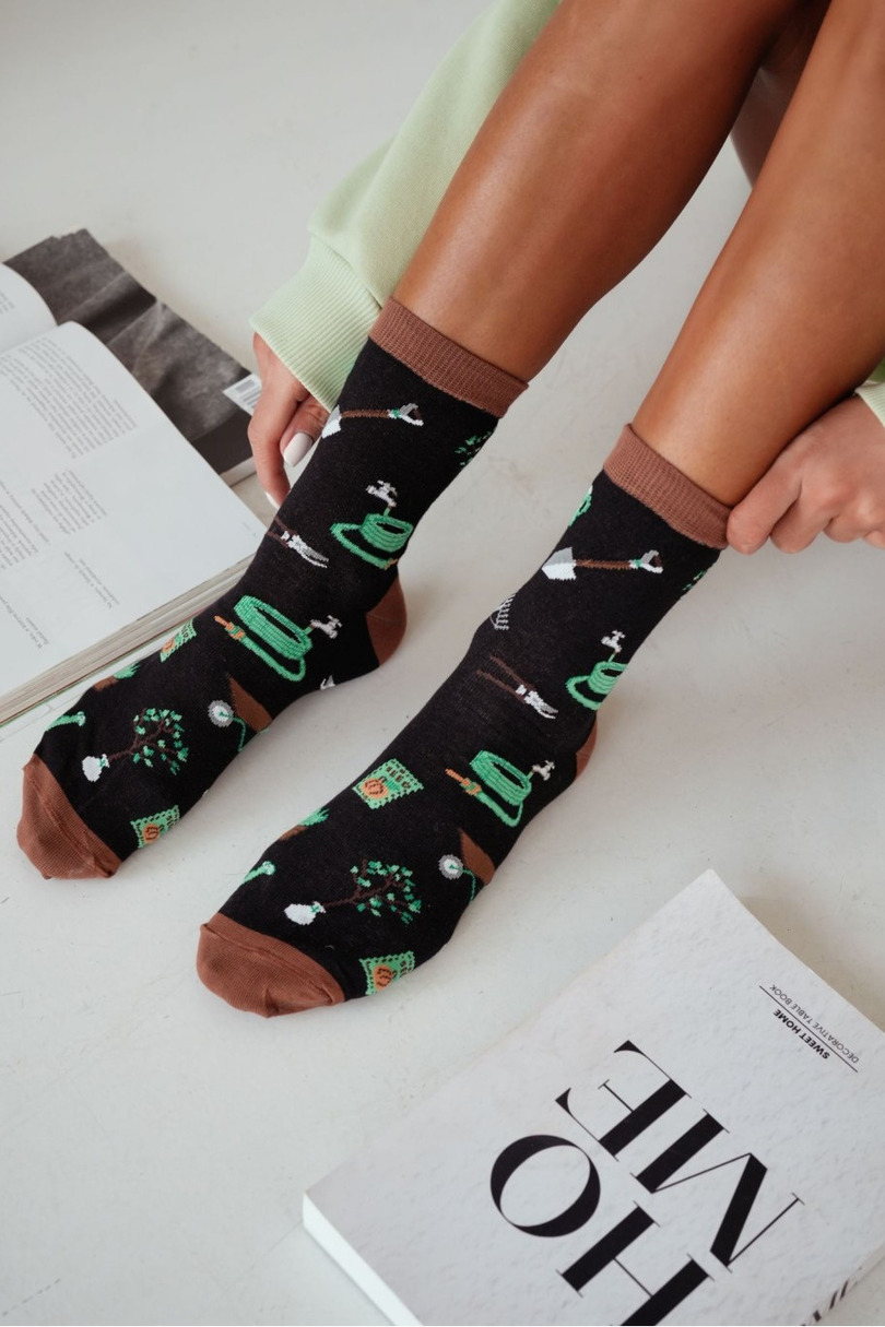 Ці жіночі бавовняні шкарпетки з грайливим візерунком у садовому стилі – ідеальний вибір для жінок, які люблять природу та цінують комфорт у повсякденному стилі. Виготовлені з високоякісної, дихаючої бавовни, вони забезпечують м’якість, комфорт та належну вентиляцію для ніг протягом усього дня. Гнучкий матеріал ідеально адаптується до форми стопи, забезпечуючи свободу рухів та комфорт під час повсякденних занять. Оригінальний, жартівливий візерунок у садівничому стилі надає цим шкарпеткам унікального характеру та робить їх цікавим доповненням до повсякденного одягу. Вони ідеально підходять для любительок рослин, садів та унікальних акцентів у гардеробі.