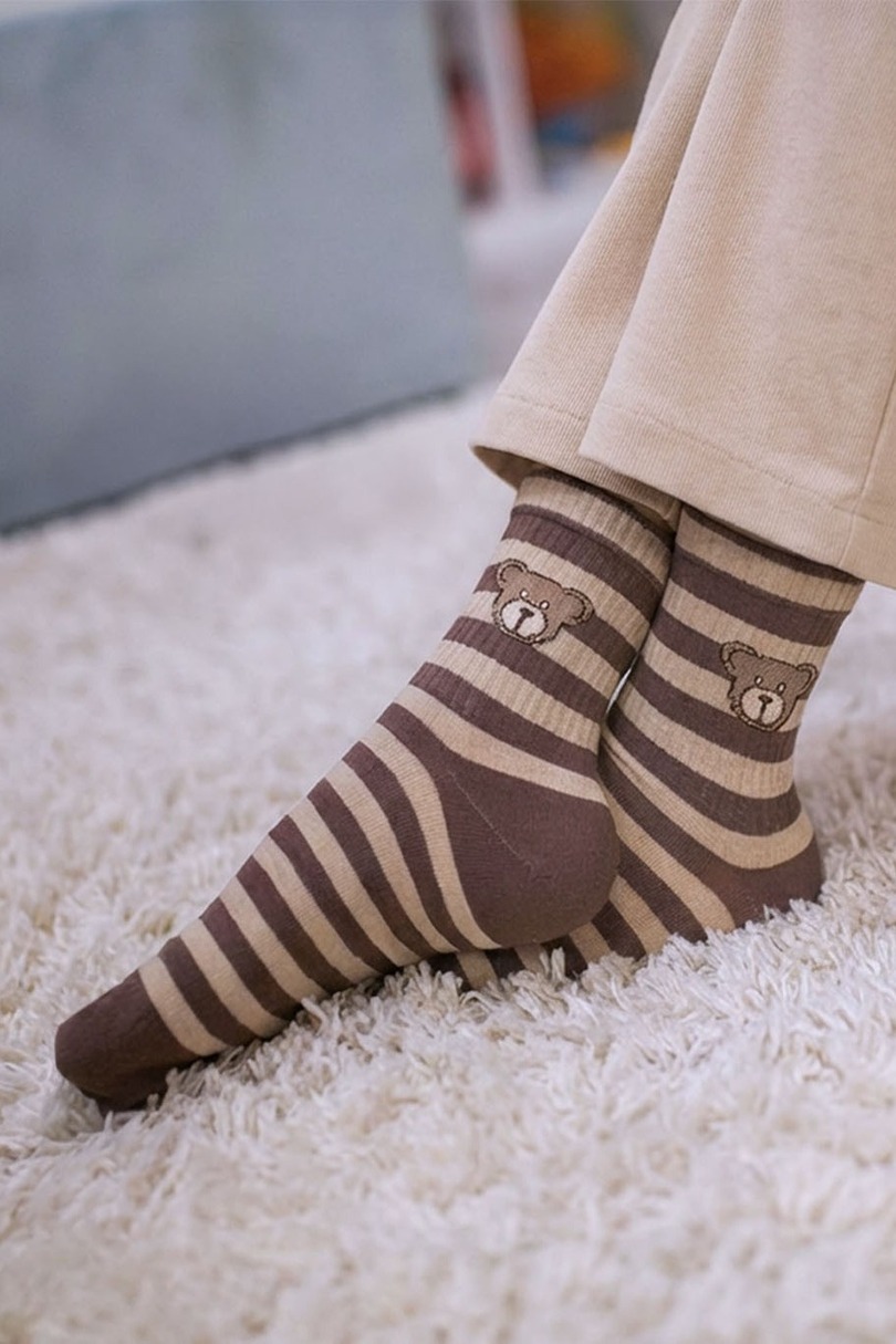 Бавовняні дитячі шкарпетки із зображенням ведмедика у верхній частині для тих, хто цінує комфорт. Вони ідеально підходять для повсякденного стилю.