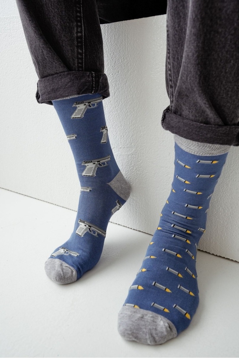 Оживіть свій образ чоловічими шкарпетками AVANGARD PISTOLETY від відомого бренду Milena. Вони поєднують оригінальний дизайн з високою якістю виконання. З унікальним мотивом пістолета ці шкарпетки додадуть характеру вашим повсякденним та невимушеним образам. Високий вміст бавовни (75%) забезпечує комфорт та повітропроникність, а додавання еластану (5%) та поліаміду (20%) забезпечує ідеальну посадку та довговічність. Незалежно від події – чи то на роботі, на зустрічі з друзями, чи як грайливий акцент до елегантного вбрання – шкарпетки AVANGARD PISTOLETY – ідеальний вибір для чоловіків, які цінують стиль та комфорт.